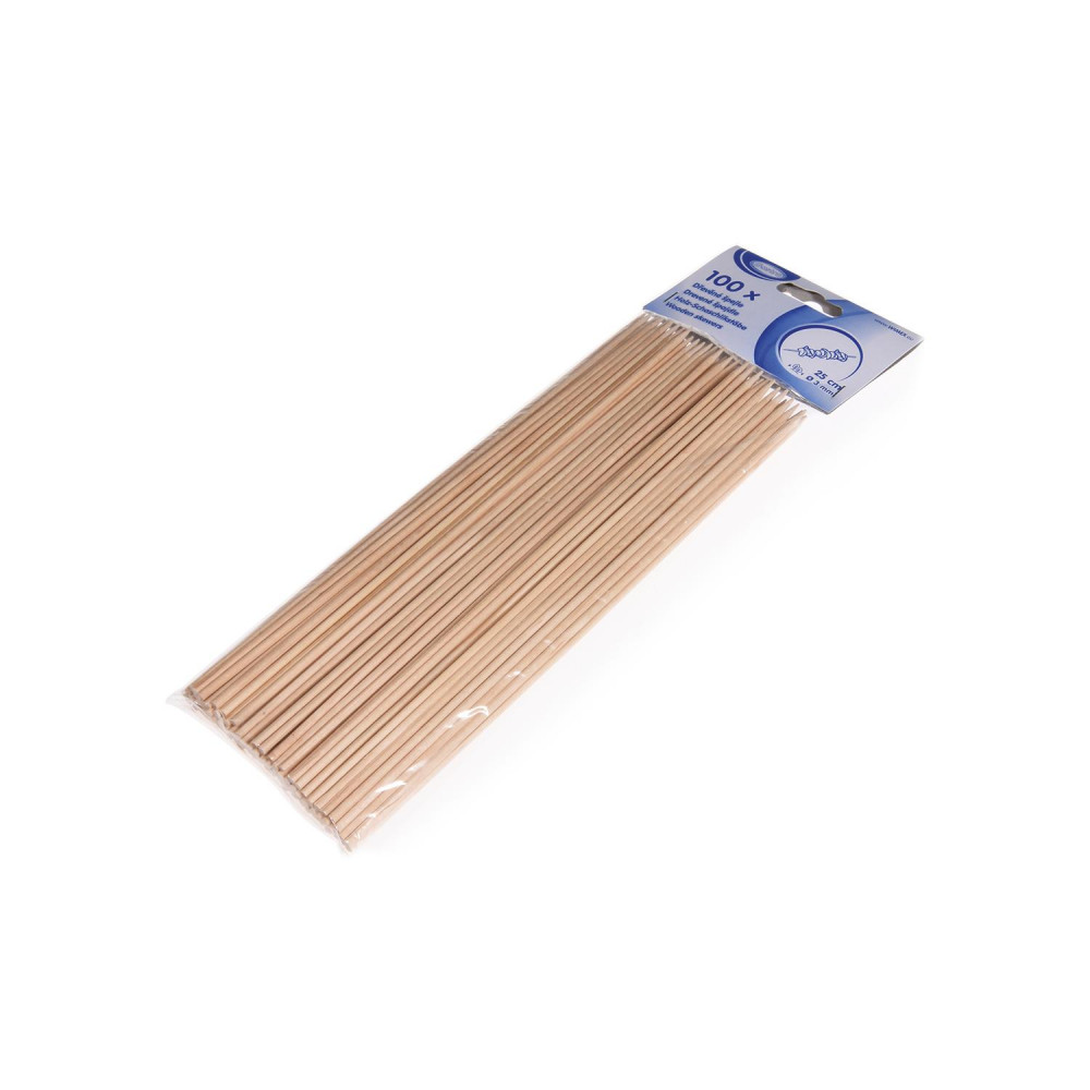 Špajdľa drevená hrotená priemer 3mm x 25cm [100ks] je vhodná na špízy mäsové, zeleninové, ovocné a rôzne špeciality. Špajdle sú zhotovené z vybraných osvedčených lesných drevín a prechádzajú osobitnými výrobnými procesmi.