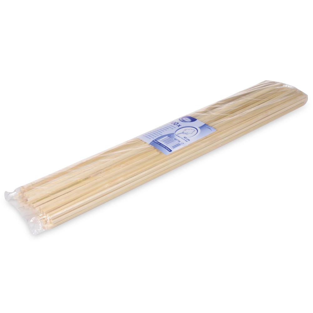 Špajdľa na cukrovú vatu bambusová 4 x 4mm x 40cm [100ks] vhodná pre predajcov cukrovej vaty, zemiakových špízov, na festivaloch, výstavách, jarmokoch, trhoch... Špajdle sú zhotovené z rastlinných zložiek a bambusových vlákien.
