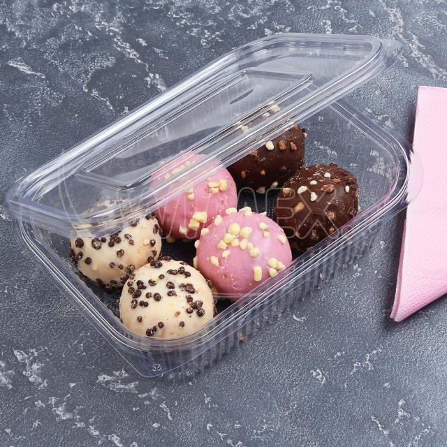 Miska (rPET) s viečkom hranatá priehľadná 750ml [50 ks]