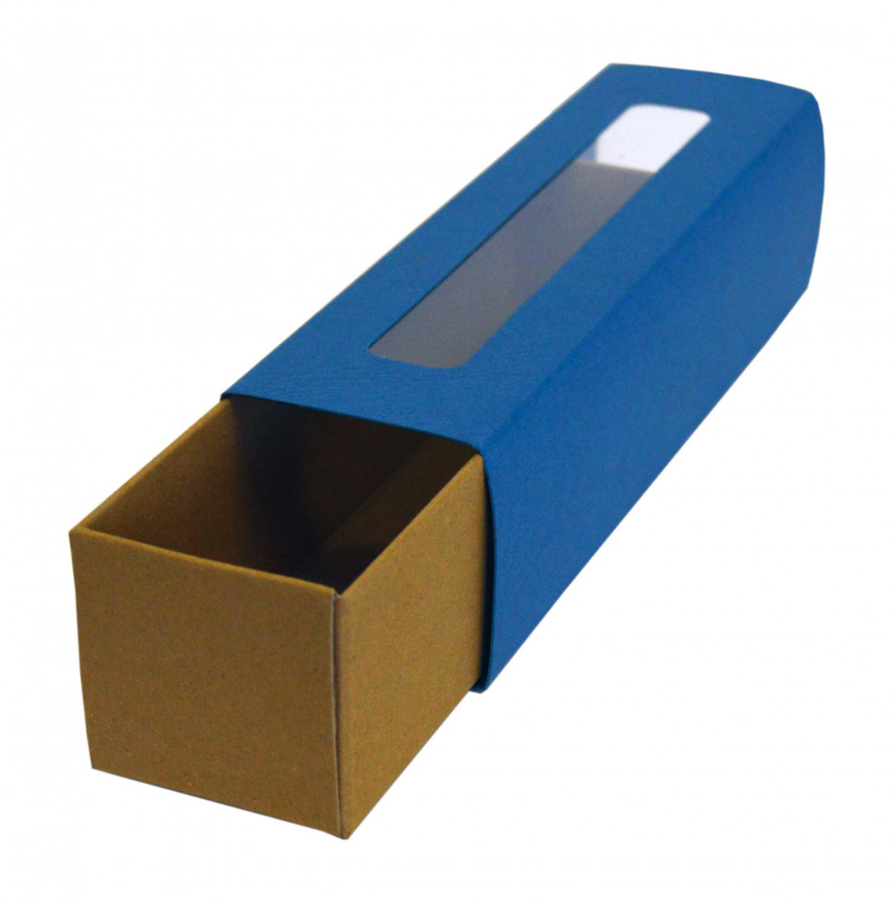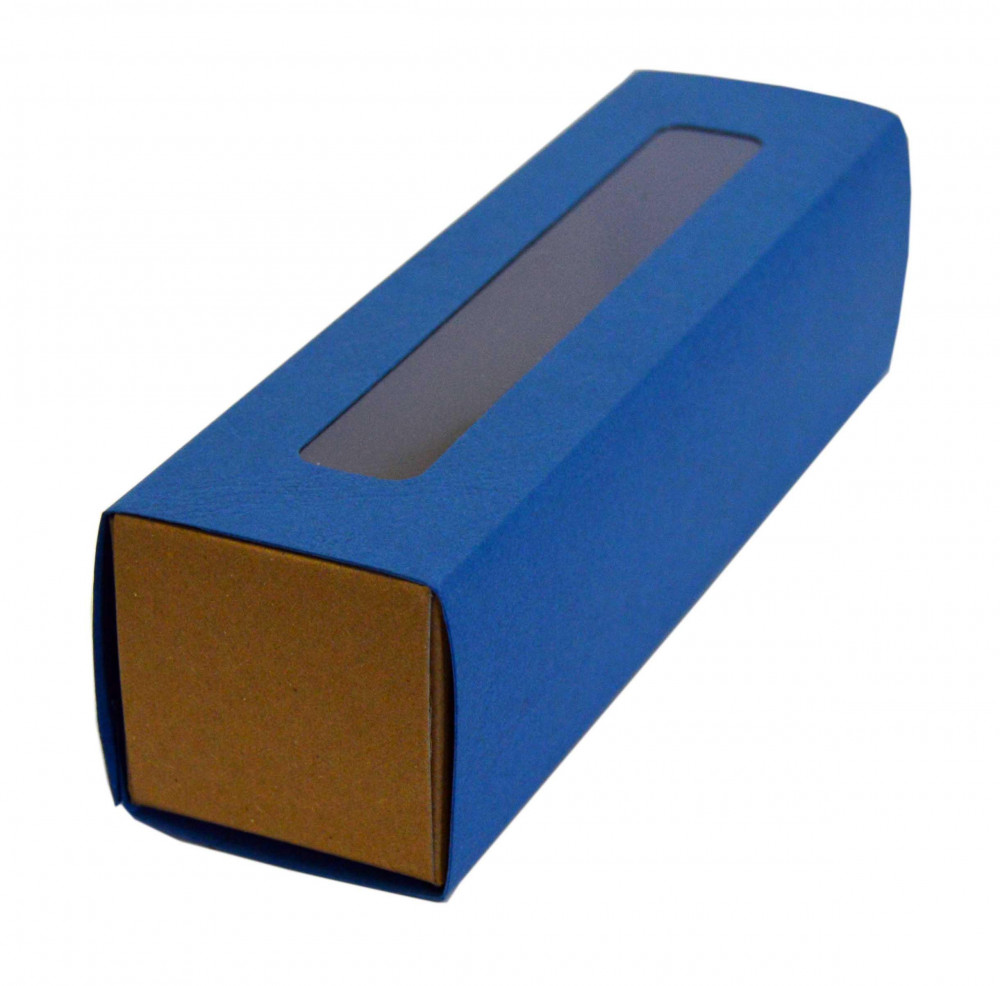 Krabička na makronky s okienkom koža 17 x 4,5 x 4,5cm svetlomodrá [25ks]