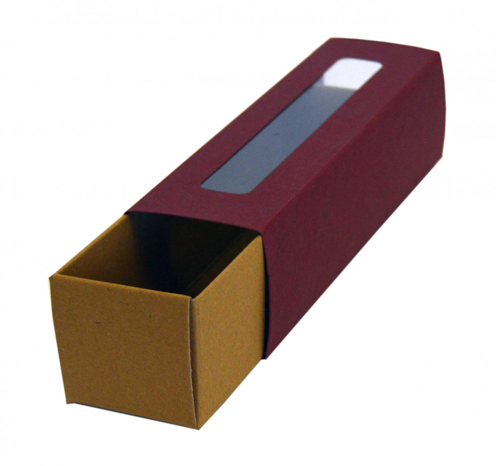Krabička na makronky s okienkom koža 17 x 4,5 x 4,5cm bordová [25ks]