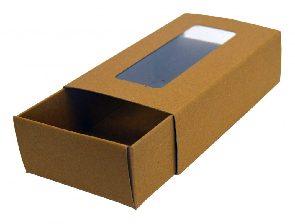 Krabička na makronky s okienkom 16 x 9 x 4,5cm hnedá [25ks]