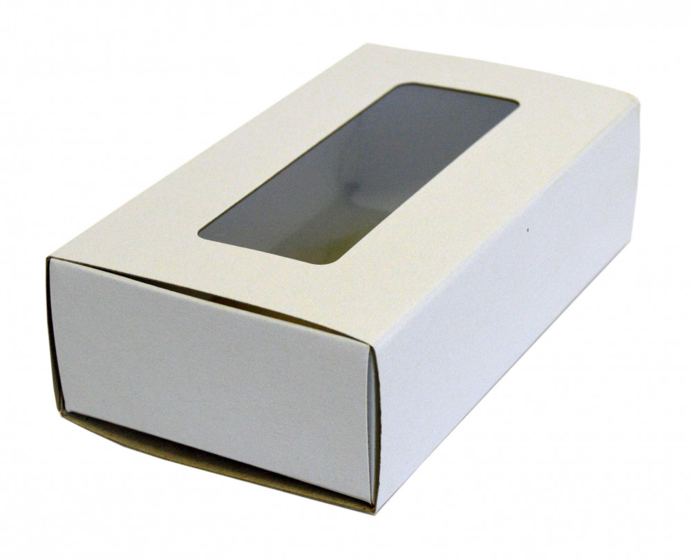 Krabička na makronky s okienkom 16 x 9 x 4,5cm biela [25ks]