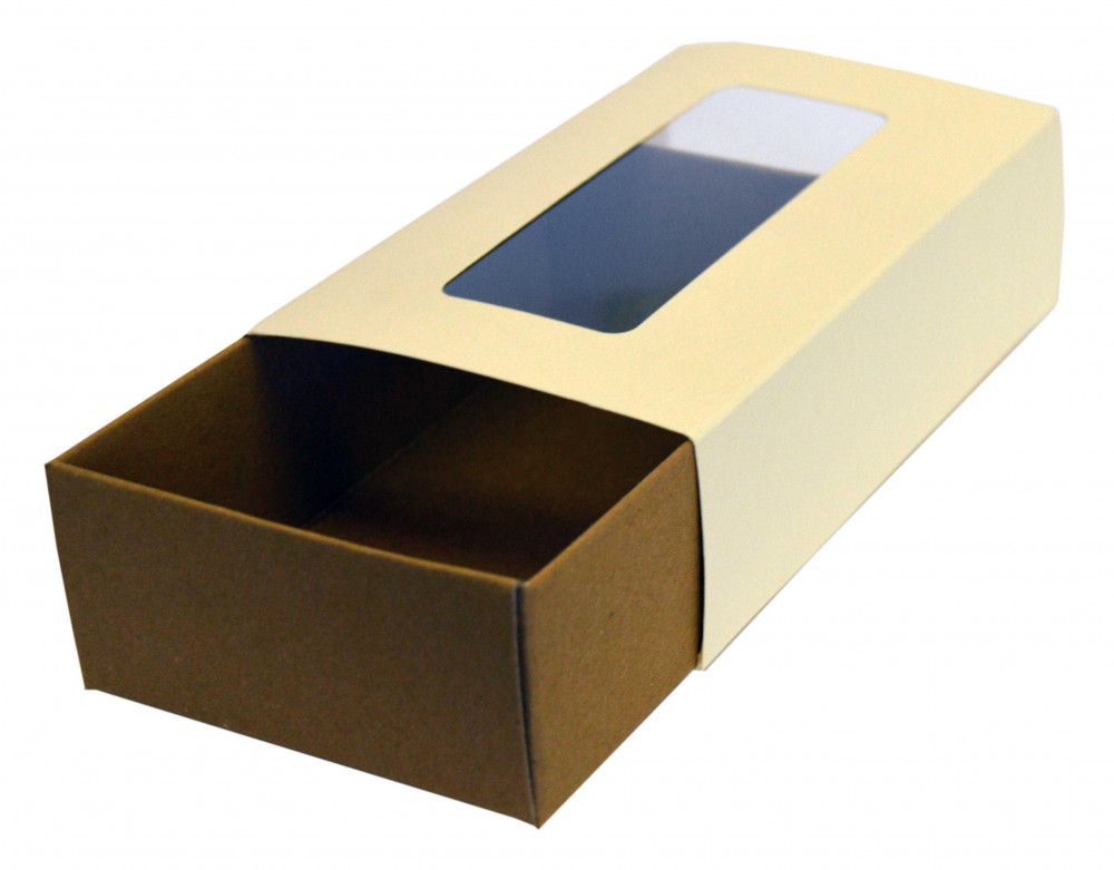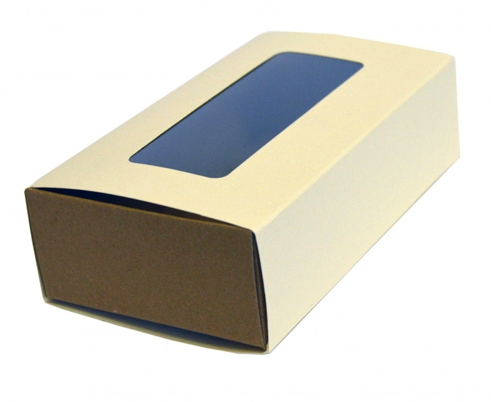 Krabička na makronky s okienkom koža 16 x 9 x 4,5cm krémová [25ks]