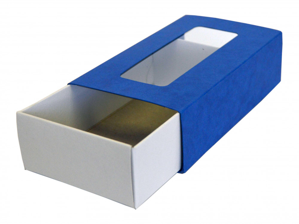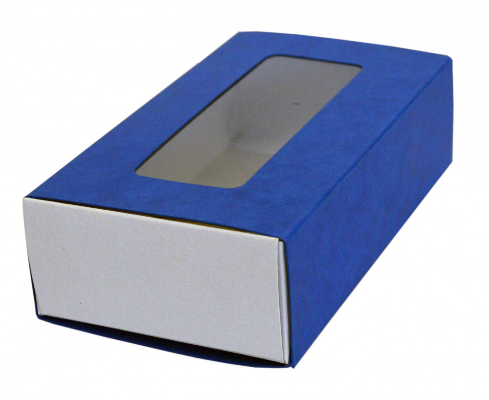 Krabička na makronky s okienkom prešpan 16 x 9 x 4,5cm tmavomodrá [25ks]