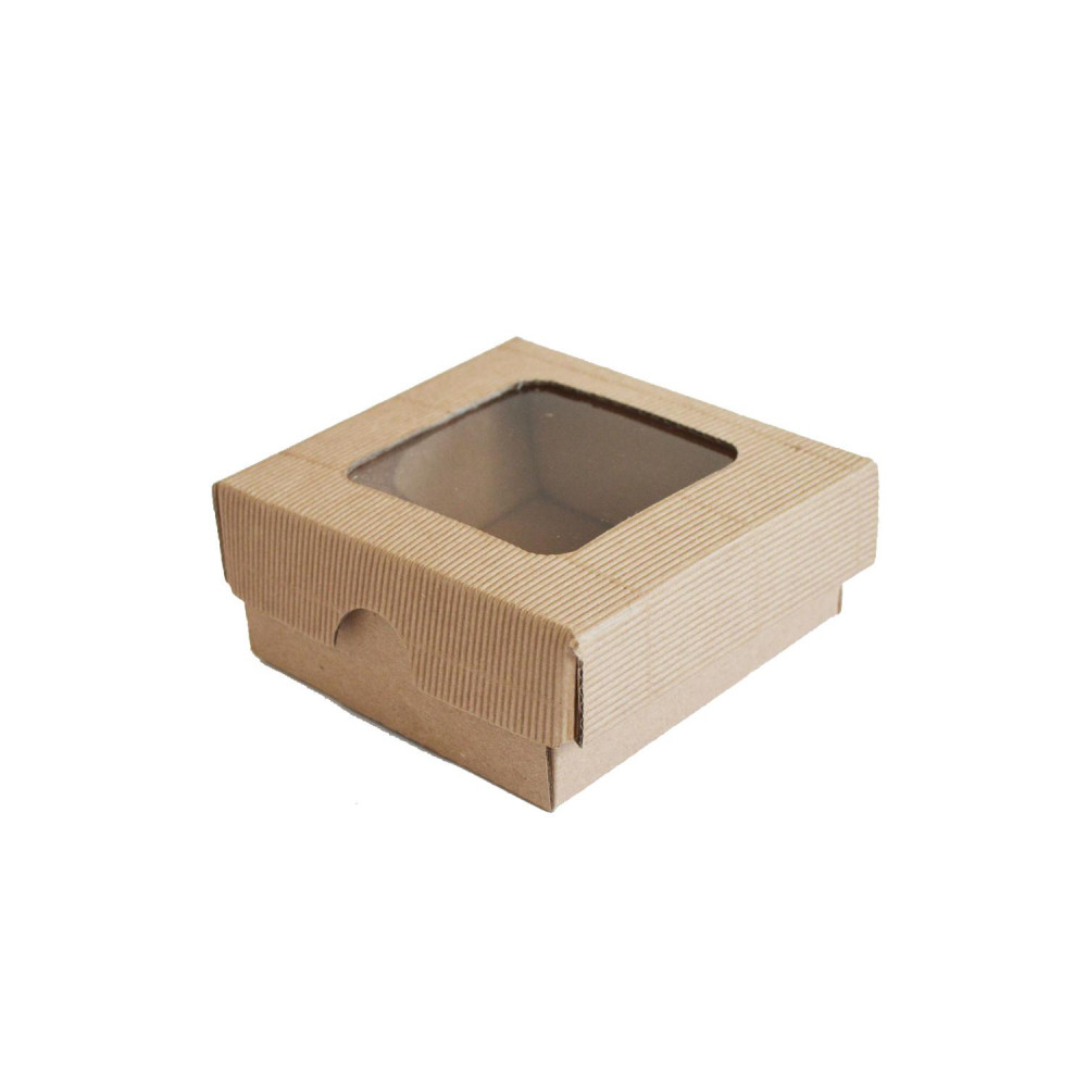 Krabička s okienkom vlnitá lepenka 9 x 9 x 4cm hnedá [25ks]