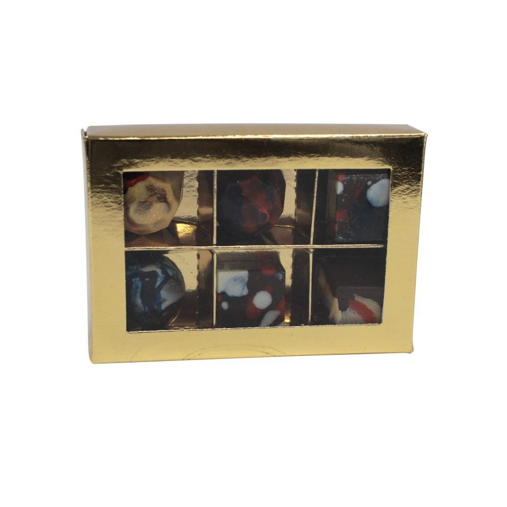 Krabička s okienkom na pralinky(6) 11 x 8 x 2cm zlatá [1ks]