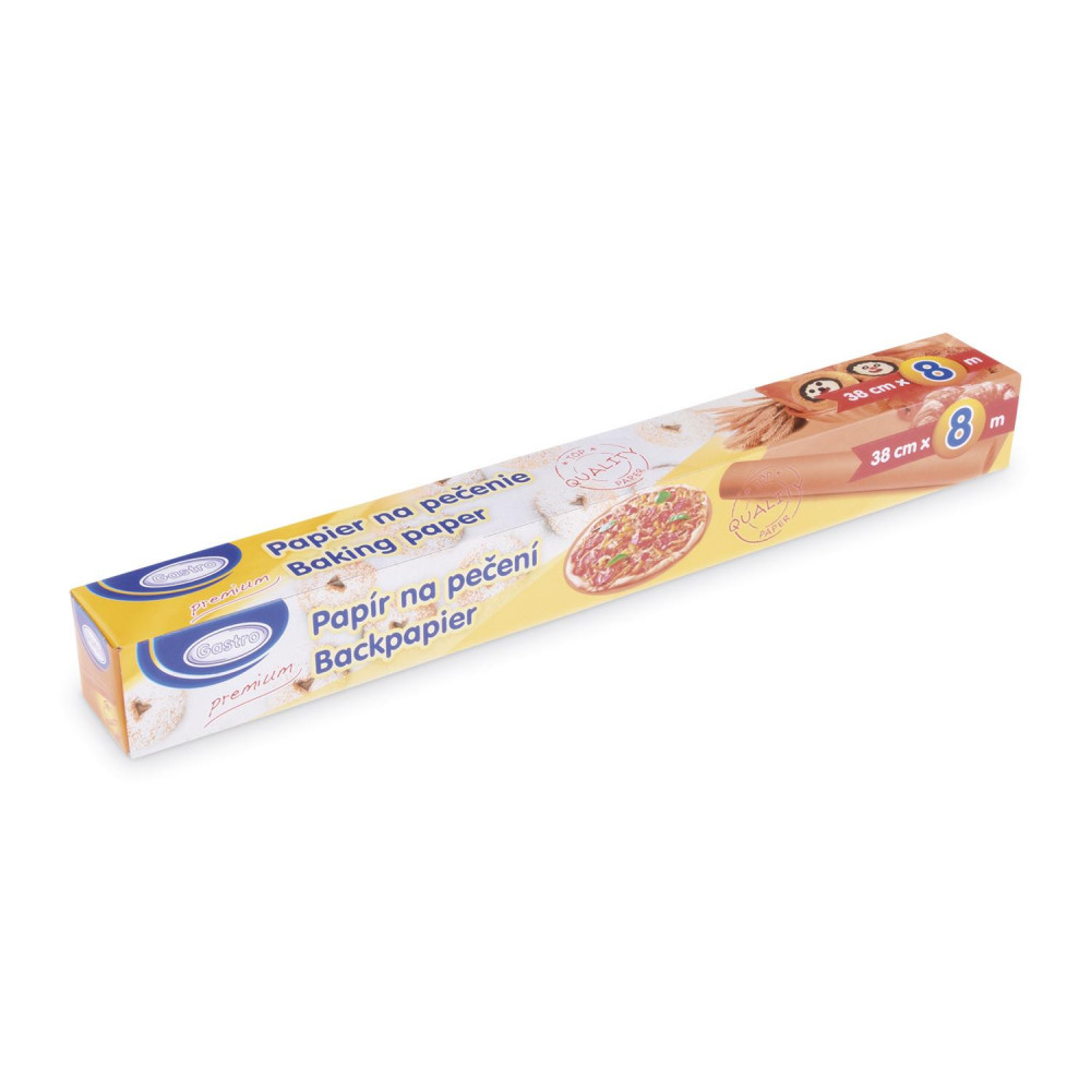 Papier na pečenie šírky 38 cm je obojstranný a viackrát použiteľný. Nie je potrebné ho natierať tukom a ani inak pripravovať na použitie. Vďaka jeho vlastnostiam nehrozí pripečenie. Je obojstranne impregnovaný silikónom. Papier odoláva teplotám do 220 o C. Je vhodný aj na použitie do mikrovlnnej rúry.